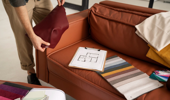 У нас широкий выбор тканей, натуральной кожи и кожзама. В наличии антивандальные ткани, которые защитят мебель от домашних животных.